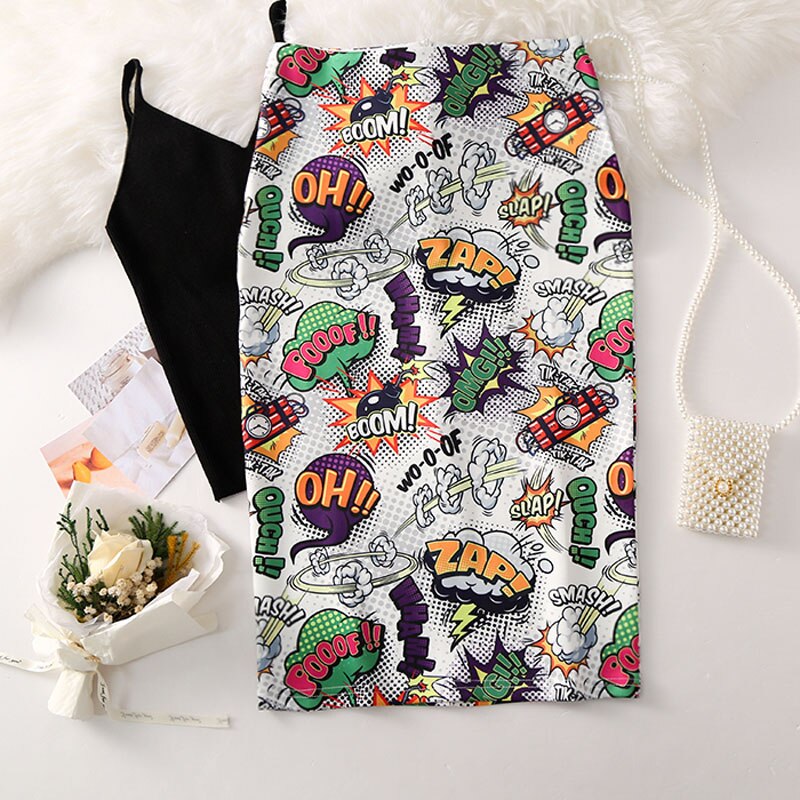Women's Pencil skirt 2019 New Cartoon Mouse Print High Waist Slim Skirts Young Girl Summer Large Size Japan Female Falda GD018