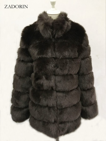 ZADORIN 2019 Plus Size Winter Outerwear Furry Faux Fur Coat Women High Collar Long Sleeve Fake Fur Jacket fourrure abrigos mujer